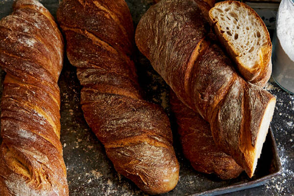 100 g Roggenmehl 100 g Ruchmehl oder fein gemahlenes Weizenvollkornmehl 300 g Weizenmehl T 700 160 g La banette T65 2 EL Trockensauerteig oder 120 g fertigen Sauerteig 12 Würfel Hefe 400 450 ml Wasser 40 g Olivenöl 12 15 g Salz 10 g Backmalz nicht zwingend erforderlich 20 g Honig. Backofen auf 220 C vorheizen. Die Hefe das Eigelb den.
